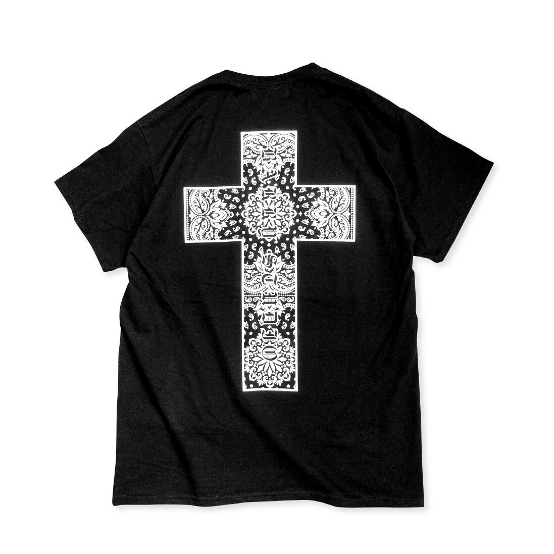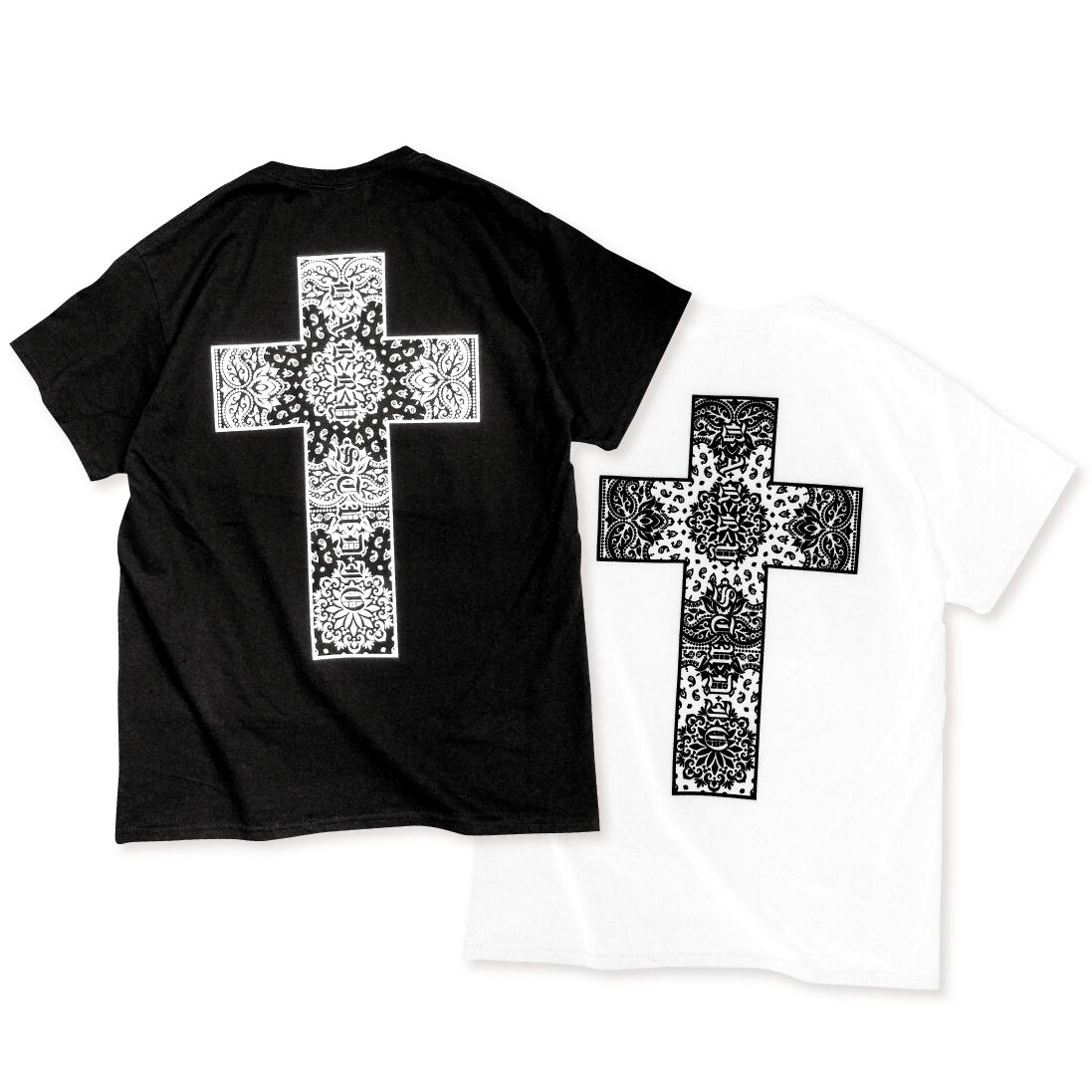 フロントはシンプルに、背中のペイズリー柄をあしらったビッグクロスが目を惹く1枚。